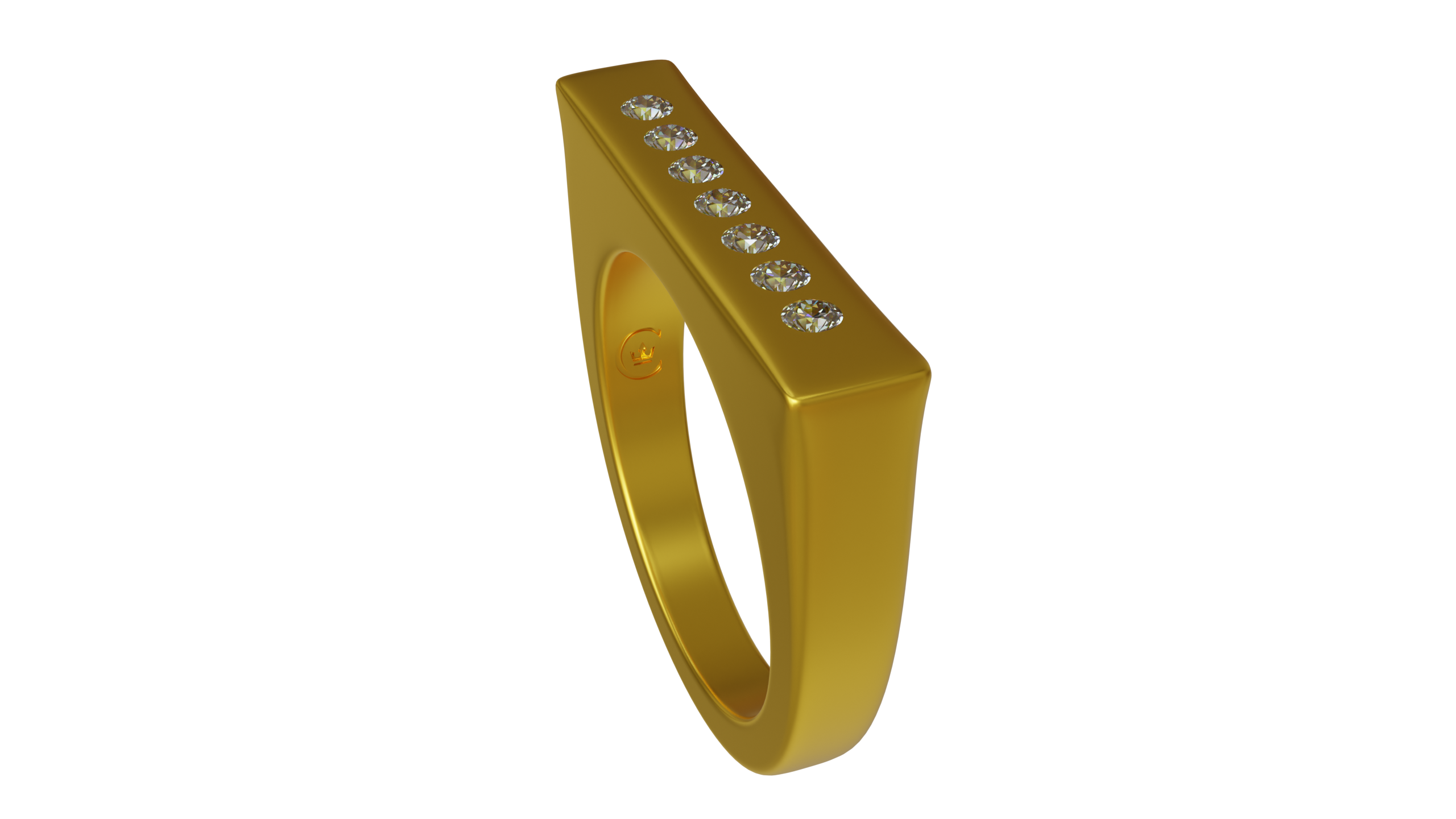 Klare Kante, starke Präsenz: Comandanta verbindet architektonische Linien mit sieben funkelnden Diamanten, wahlweise lab-grown in Schwarz oder Weiß. Gefertigt aus Feingold oder Platingold, steht dieser Ring für moderne Eleganz, Selbstbestimmung und Entdeckergeist. Minimalistisch im Design, maximal in der Aussage: Sie setzen den Ton.